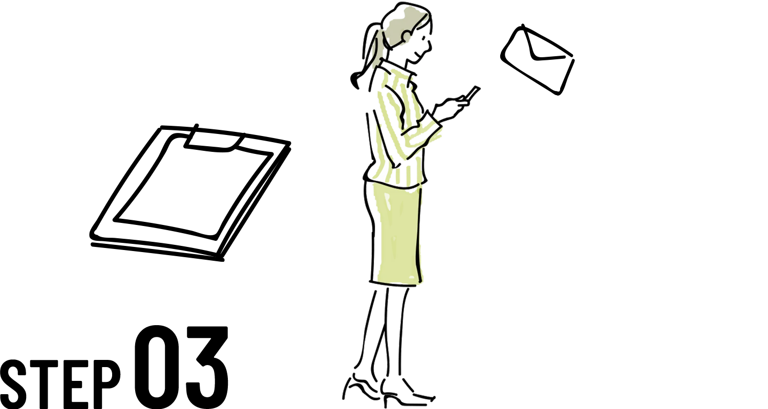 ご郵送、またはメールにて履歴書、職務経歴書をお送りいただきます。