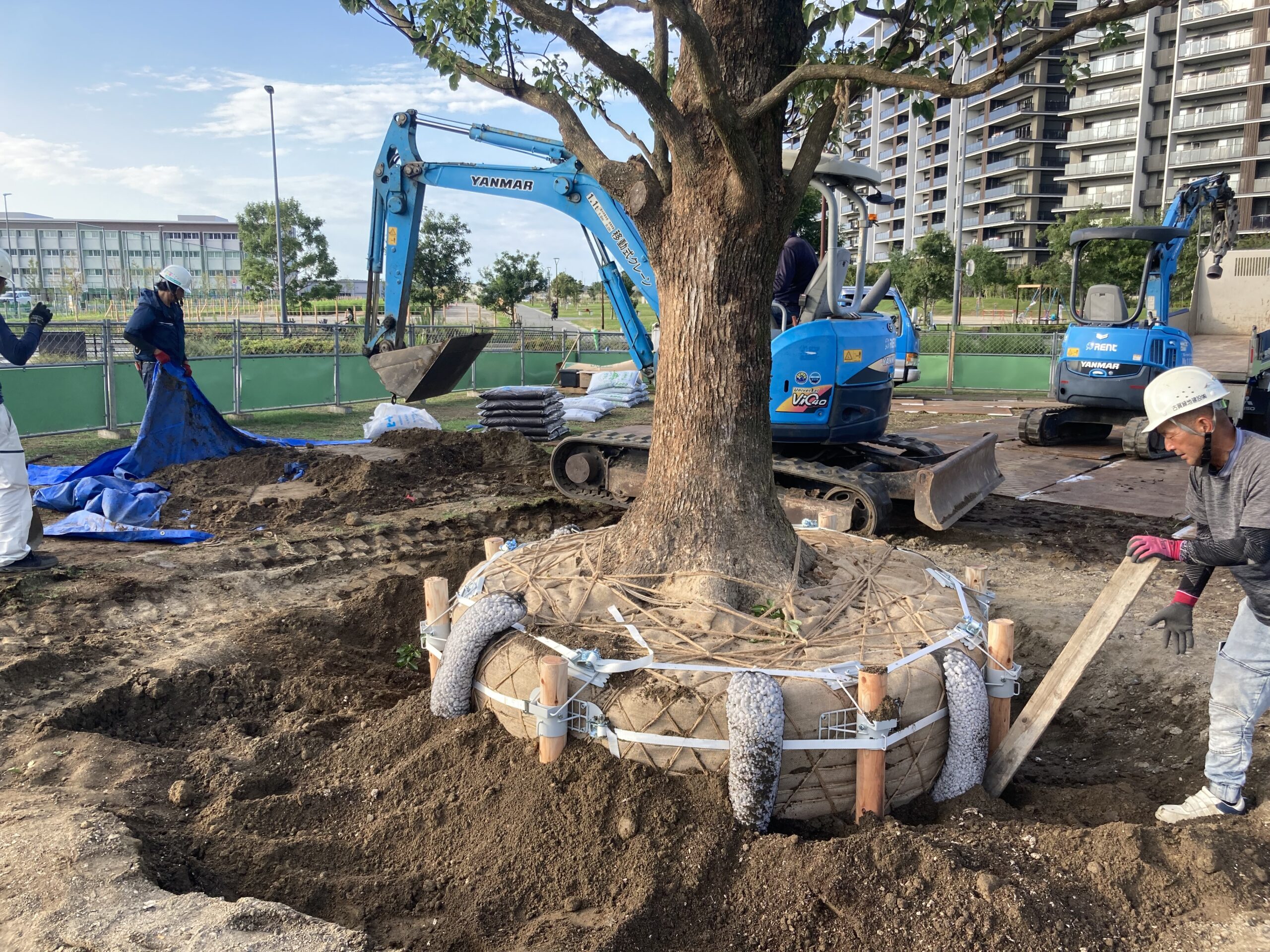 • 根鉢固定型の地下支柱や緩衝材を適切に設置することで、強風や沈下への対策を講じました。